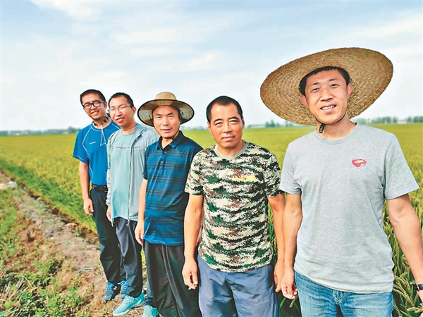 孫世臣等4位博士科技特派員為樺川縣創(chuàng)業(yè)鄉(xiāng)中山村引進(jìn)高產(chǎn)龍稻田間指導(dǎo)。