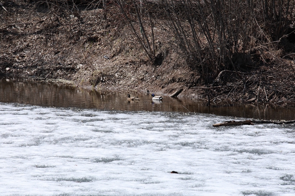 四月底雪還沒有完全融化,挺過(guò)寒冬的北噪鴉“小夫妻”開始筑巢繁育后代,綠頭鴨等飛禽迫不及待地飛回家鄉(xiāng)。