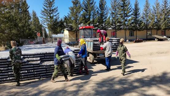 在各項(xiàng)條件具備后,苗圃搶抓時(shí)間進(jìn)行輕基質(zhì)杯生產(chǎn)工作和起苗作業(yè),職工們發(fā)揚(yáng)實(shí)干精神,積極投入到生產(chǎn)工作中來,每天生產(chǎn)輕基質(zhì)近1萬杯,并已完成新播落葉松起苗工作。