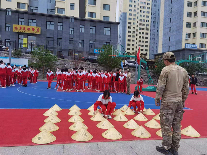 5月30日早8:00,初一學(xué)年100名學(xué)生分成四組開始了為期一天的拓展訓(xùn)練。拓展訓(xùn)練前,教練首先告訴同學(xué)們:軍人以服從紀(jì)律為天職,作為中國人應(yīng)懷著一顆感恩之心回報社會、建設(shè)祖國。