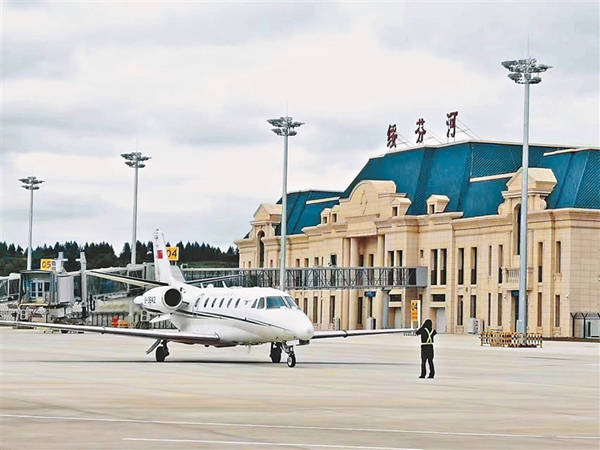 校驗(yàn)飛機(jī)平穩(wěn)降落在綏芬河機(jī)場(chǎng)。圖片由省機(jī)場(chǎng)集團(tuán)提供