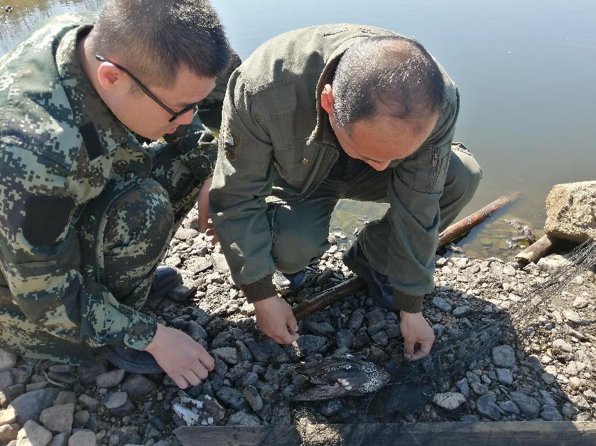 圖強林業(yè)局森林資源管理科工作人員在壯林林場施業(yè)區(qū)檢查工作時,發(fā)現一只綠翅鴨被粘網粘住,資源科工作人員對其展開營救。