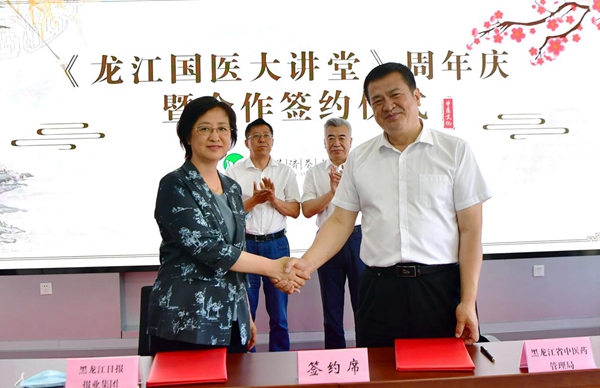 活動現(xiàn)場,黑龍江日報報業(yè)集團(tuán)分別與黑龍江省中醫(yī)藥管理局、黑龍江省中醫(yī)藥科學(xué)院進(jìn)行了合作簽約。省中醫(yī)藥管理局黨組書記、局長張曉峰說:黑龍江日報報業(yè)集團(tuán)具有廣泛的社會影響力,我們將以框架協(xié)議的簽署為契機(jī),在中醫(yī)藥文化知識宣傳普及、中醫(yī)藥產(chǎn)業(yè)宣傳推介方面進(jìn)一步加深合作。省中醫(yī)藥科學(xué)院黨委書記、院長陳宏在現(xiàn)場說:《龍江國醫(yī)大講堂》已成為我省中醫(yī)藥文化宣傳戰(zhàn)線上的知名品牌,我們將在多領(lǐng)域開展更深層次、更高水平的合作,為我省中醫(yī)藥事業(yè)跨越式發(fā)展助推加力。