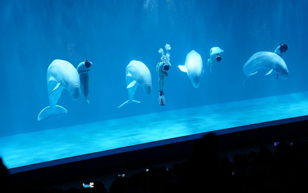 2009年,哈爾濱極地公園首推極地白鯨水下表演,歷時(shí)13年的時(shí)間,“來哈爾濱·看白鯨表演”已經(jīng)成為全國游客心馳神往的旅游節(jié)目,而表演中經(jīng)典的“海洋之心”不僅獲得了原創(chuàng)版權(quán),也成為了哈爾濱一張具有浪漫色彩的文旅名片,獲得國內(nèi)、國際主流媒體持續(xù)十余年的關(guān)注。2021年5月,三只可愛的極地白鯨創(chuàng)造的“三鯨開泰”首次亮相;現(xiàn)在,哈爾濱極地公園的白鯨家族推出“四鯨巡游”、“四鯨祈?!钡雀唠y度表演,再一次創(chuàng)造了經(jīng)典。