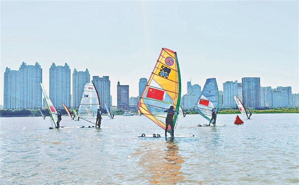 在松花江上,在呼蘭河口濕地……冰城的夏日里,波光粼粼的水面上,時(shí)常倒映著片片三角形彩帆。