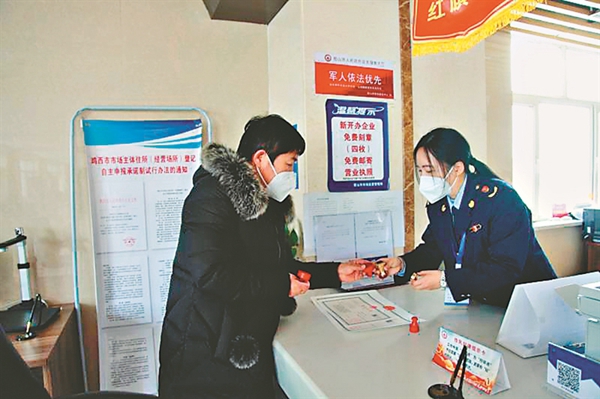 如今,凡是在密山市新注冊的企業(yè),都會享受到由密山市政務服務中心特制的 “免費+”服務套餐——即為新注冊的企業(yè)免費刻章、免費復印、免費快遞。2021年6月至今,密山市為新注冊的390家企業(yè)免費刻制印章1560枚,免費快寄印章、營業(yè)執(zhí)照、房產證等1000余件,同時還為500多戶企業(yè)、30000多名群眾免費復印各種材料。