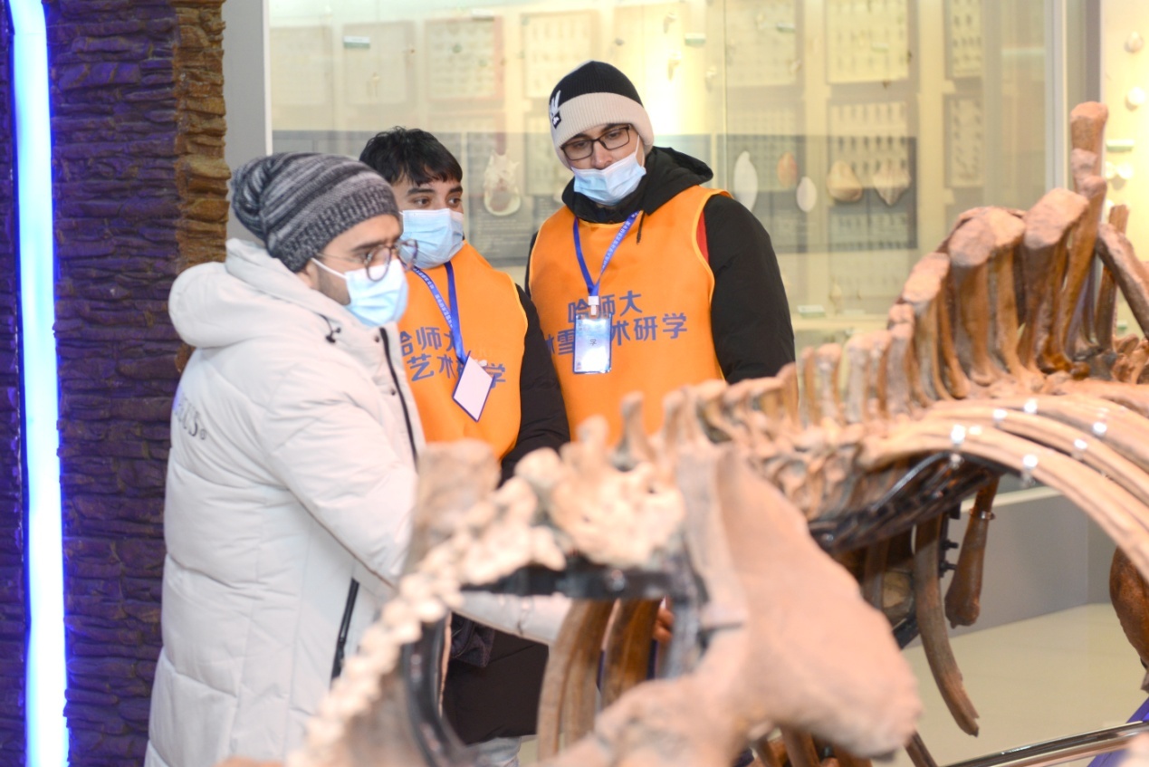 下午,共同走進哈爾濱師范大學。在哈師大文博館,化石、甲骨片、石器、陶器等文物珍品,將中國文化展現(xiàn)給各國青年,讓留學生感受中國的悠久歷史,了解中華文化的博大精深。在哈師大動植物標本館,森林景觀、草原景觀、大型鳥獸、植物標本等13個展區(qū),像一部厚重的生物史和生物多樣性教科書,展現(xiàn)了千姿百態(tài)、栩栩如生的生命畫卷。