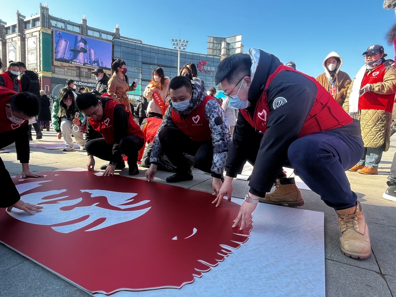 在會場的中間,一幅長3.6米,寬3.6米的學(xué)習(xí)雷鋒主題拼畫,在黨員干部、青年志愿者和青少年的齊心協(xié)力下呈現(xiàn)出來,展現(xiàn)了志愿者以實(shí)際行動(dòng)向雷鋒同志學(xué)習(xí),引導(dǎo)青少年積極向上,努力奮斗的精神風(fēng)貌。