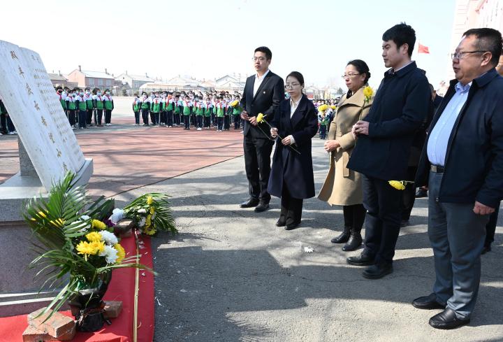 3月29日,不僅是“張慶云紀(jì)念展館”開館十周年,也是慶云希望小學(xué)捐建者——百歲老人張慶云逝世12周年的日子。儀式上,全體共同悼念老人,領(lǐng)導(dǎo)嘉賓及慶云希望小學(xué)學(xué)生代表向張慶云紀(jì)念碑敬獻(xiàn)鮮花,以示對慶云老人的感恩、敬重和懷念之情。隨后,團(tuán)省委副書記張濤為張慶云(焦珊代領(lǐng))頒發(fā)“龍江希望工程三十年公益之星”榮譽(yù)證書;為哈爾濱市阿城區(qū)雙豐慶云希望小學(xué)頒發(fā)“龍江希望工程三十年學(xué)校之星”榮譽(yù)證書。