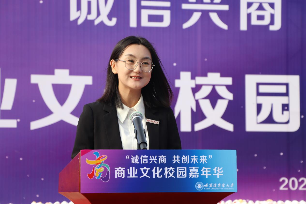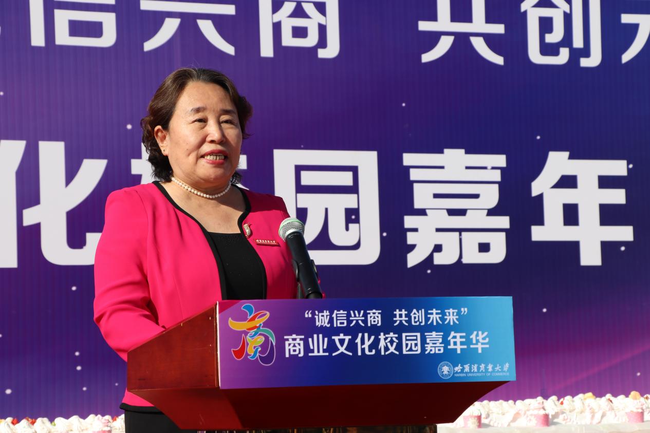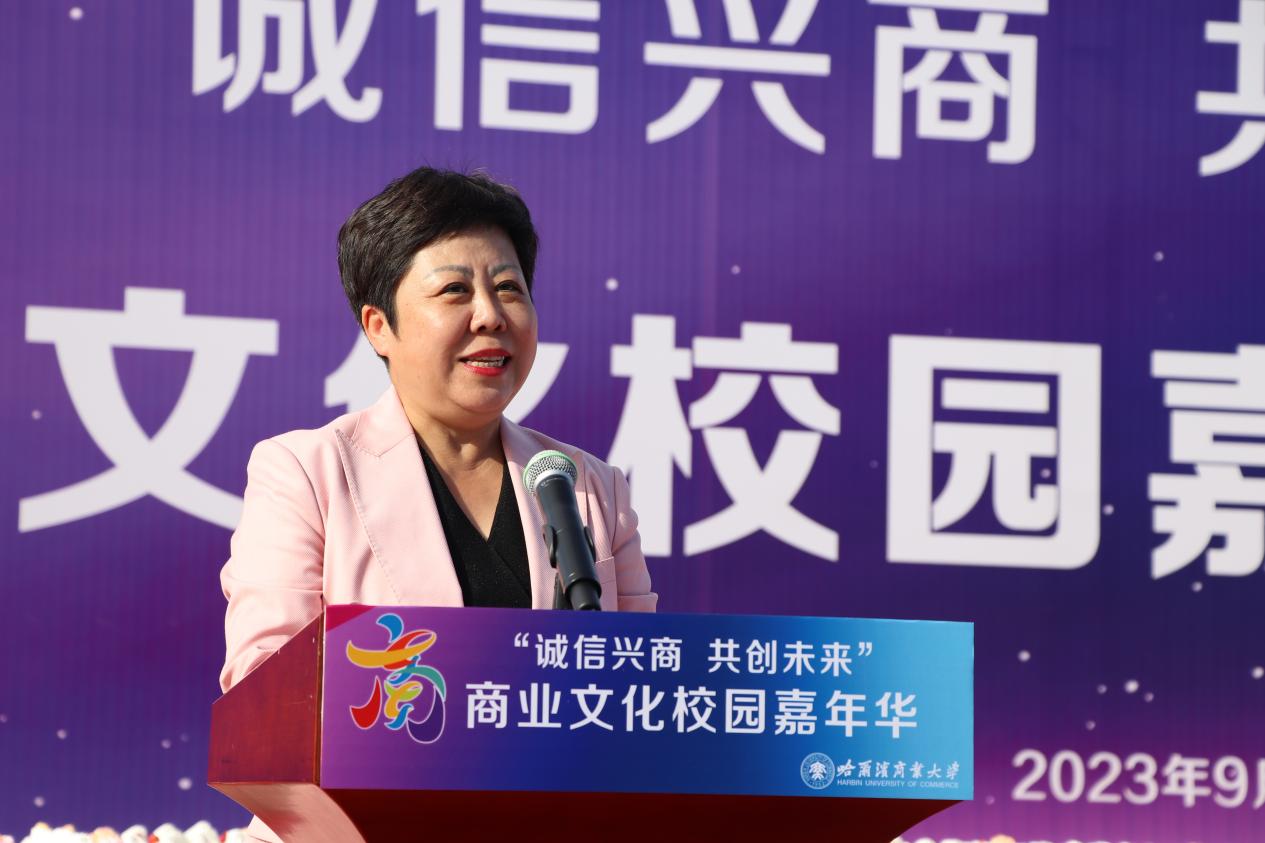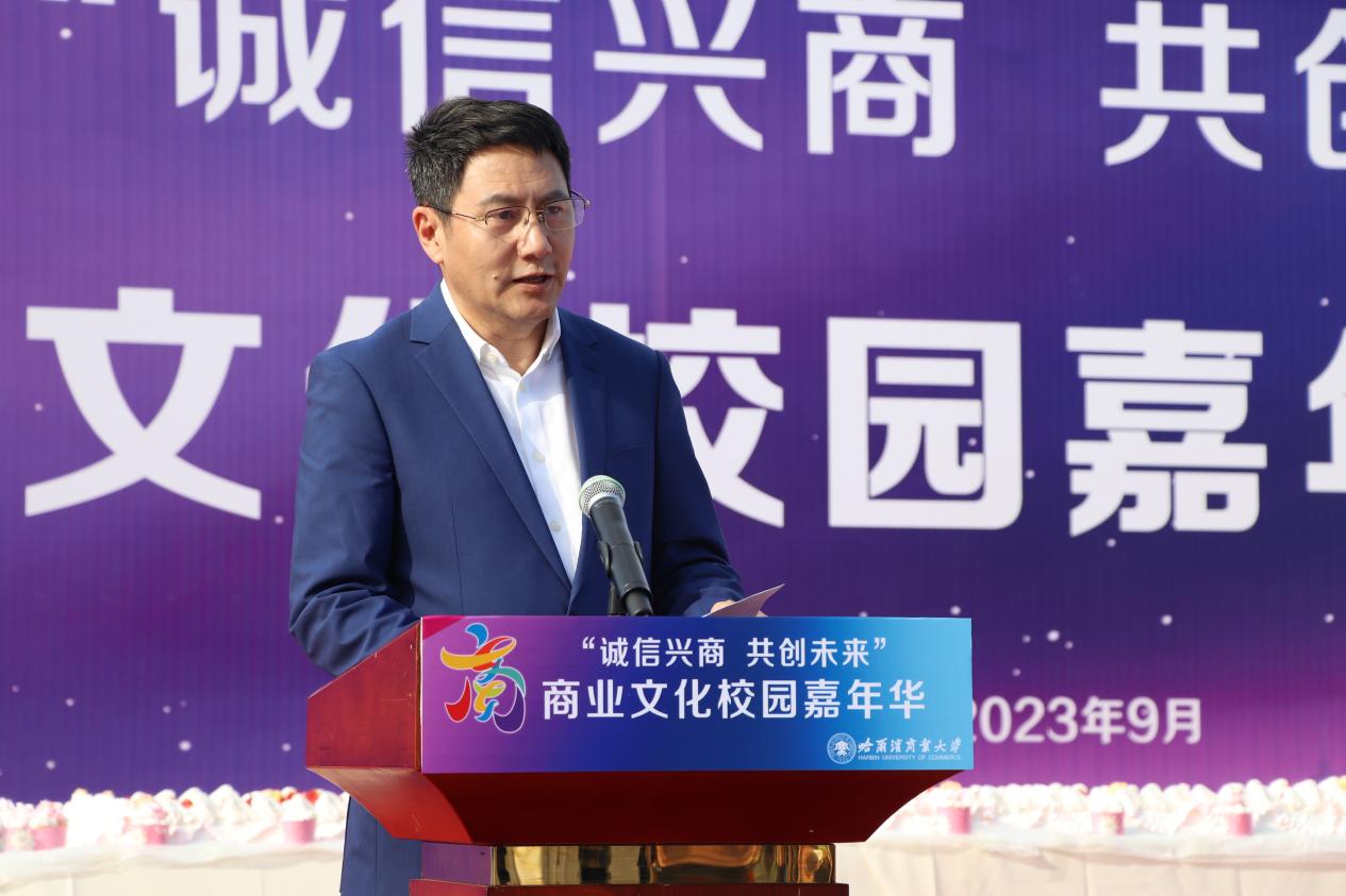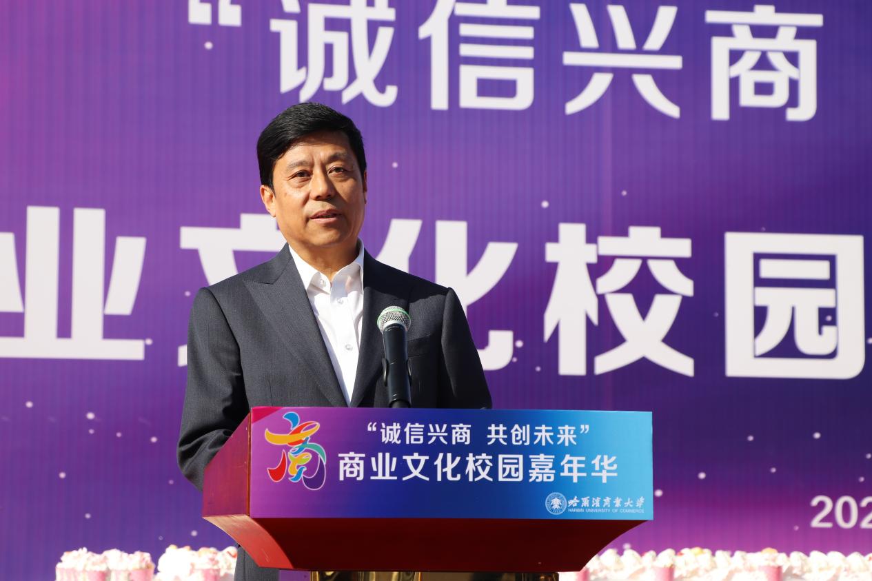 哈爾濱商業(yè)大學(xué)黨委書記孫先民致辭。他表示,誠信“軟實力”為高質(zhì)量發(fā)展提供“硬支撐”。本屆“誠信興商·共創(chuàng)未來”商業(yè)文化校園嘉年華活動堅持以文化力量啟智潤心、固本培元,是深入學(xué)習(xí)貫徹習(xí)近平總書記在主持召開新時代推動?xùn)|北全面振興座談會和視察我省時的重要講話重要指示精神,全面落實立德樹人根本任務(wù)的務(wù)實舉措。哈爾濱商業(yè)大學(xué)作為新中國第一所多科性商業(yè)大學(xué),始終堅持“大商鑄才、大雅育人、商雅兼?zhèn)洹⒔?jīng)世濟民”的育人理念,厚植師生“心懷祖國,至誠奉獻,以商弘業(yè),矢志一流”的大商之道?;顒訉⒊浞职l(fā)揮老字號在文化引領(lǐng)、品牌建設(shè)、產(chǎn)業(yè)升級等方面的示范引領(lǐng)作用,彰顯龍江市場主體活力與創(chuàng)新力,聚焦建設(shè)“六個龍江”、推進“八個振興”,筑牢堅定龍江文化繁榮發(fā)展的自信根基,進一步凝聚師生扎根龍江、服務(wù)龍江、建設(shè)龍江的情懷和力量。