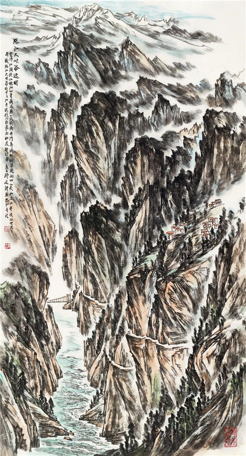 舒建新 怒江大峽谷遠(yuǎn)眺 234cm×123cm 國畫