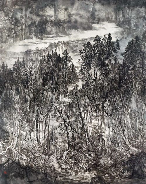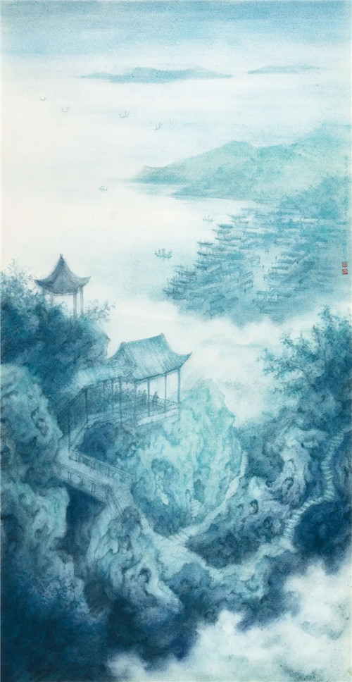 薛磊 青城嵐煙 234cm×123cm 國畫