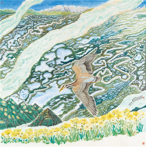 徐冬青 當(dāng)曲風(fēng)光 花開源頭 200cm×200cm 國畫