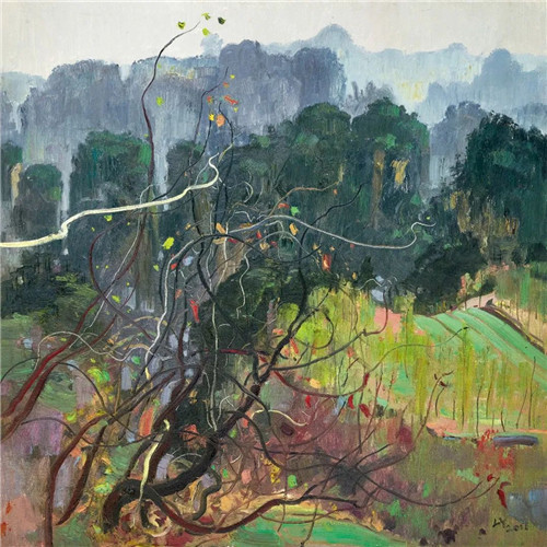 田衛(wèi)平 長江北源楚瑪爾河 150cm×200cm 油畫