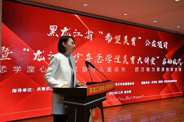 為深入貫徹習(xí)近平總書(shū)記對(duì)希望工程實(shí)施30周年的重要寄語(yǔ)精神,進(jìn)一步提升新時(shí)代希望工程的助學(xué)育人質(zhì)量,12月12日,黑龍江省“希望美育”公益項(xiàng)目暨“龍江青少年孞學(xué)漟美育大講堂”啟動(dòng)儀式在希望大廈舉行。黑龍江省文學(xué)藝術(shù)界聯(lián)合會(huì)一級(jí)巡視員張正明,共青團(tuán)黑龍江省委副書(shū)記代東力,黑龍江省青聯(lián)委員、深圳市孞學(xué)漟教育科技有限公司創(chuàng)始人楊梓杺,黑龍江省民政廳、黑龍江省青少年發(fā)展基金會(huì)等相關(guān)單位領(lǐng)導(dǎo),嘉仁公益、益家公益代表,伙伴計(jì)劃社區(qū)代表,哈爾濱市松北區(qū)樂(lè)業(yè)小學(xué)“童心港灣”代表,哈爾濱市蘇寧紅軍小學(xué)校、哈爾濱市合眾人壽希望小學(xué)、哈爾濱新區(qū)第三學(xué)校等學(xué)校師生代表參加活動(dòng)。