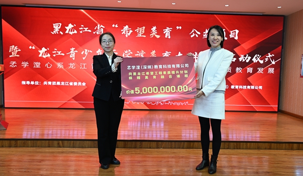 心系龍江留守兒童成長(zhǎng),百萬(wàn)愛(ài)心助力“希望美育”。儀式上,孞學(xué)漟(深圳)教育科技有限公司向“希望工程素質(zhì)提升計(jì)劃”捐贈(zèng)價(jià)值500萬(wàn)元美育融合課程,成為黑龍江省“希望美育”公益項(xiàng)目的首筆捐贈(zèng),黑龍江省希望工程捐助中心、黑龍江省青少年發(fā)展基金會(huì)與深圳市孞學(xué)漟教育科技有限公司將共同打造“龍江青少年孞學(xué)漟美育大講堂”系列公益課程。項(xiàng)目旨在為廣大鄉(xiāng)村美術(shù)教師與學(xué)生提供更為直觀和便捷的專(zhuān)業(yè)化美術(shù)指導(dǎo),提升學(xué)生對(duì)美的認(rèn)知和感受能力,培養(yǎng)學(xué)生的創(chuàng)造力和想象力,幫助鄉(xiāng)村青少年陶冶高尚情操、塑造美好心靈,實(shí)現(xiàn)全面發(fā)展。此次合作將連續(xù)實(shí)施5年,助力萬(wàn)名龍江學(xué)子“發(fā)現(xiàn)生活中的美”。