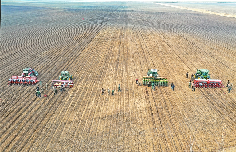 近日,“大糧倉”黑龍江墾區(qū)玉米播種全面展開,北大荒有耕地4600余萬畝,綜合機械化率99.7%。北大荒農業(yè)股份友誼分公司今年種植玉米81萬畝,在機械化、智能化的強力支撐下,作業(yè)進度快、效率高,有效提高了春播生產的質量與進度。徐宏宇攝