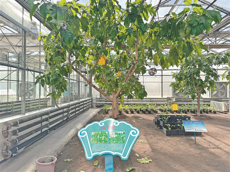 “我們引進了華中農業(yè)大學歷時13年研發(fā)的超級物種系列核心產品——山茄樹,它可以實現一年多產,四季結果,是常規(guī)產量的2至5倍。種植一次,可收益多年,社會效益和經濟效益十分可期?!逼咝欠止究萍紙@區(qū)副主任汪敏介紹說。