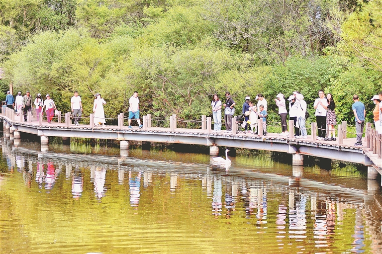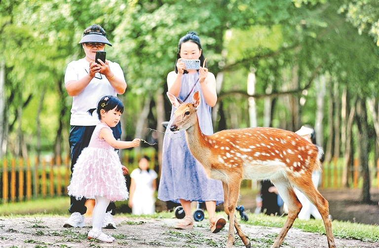 16日,陽(yáng)光明媚,空氣清新,哈爾濱市迎來(lái)了好天氣。太陽(yáng)島上,草木茂盛,百花爭(zhēng)艷,許多本地市民和南方游客組團(tuán)來(lái)到這里避暑游玩。有的游人搭起帳篷野餐,有的游人走上濕地棧道觀(guān)賞美麗風(fēng)景。孩子們玩過(guò)各種游樂(lè)項(xiàng)目后,再與小鹿、松鼠等小動(dòng)物來(lái)個(gè)親密接觸。