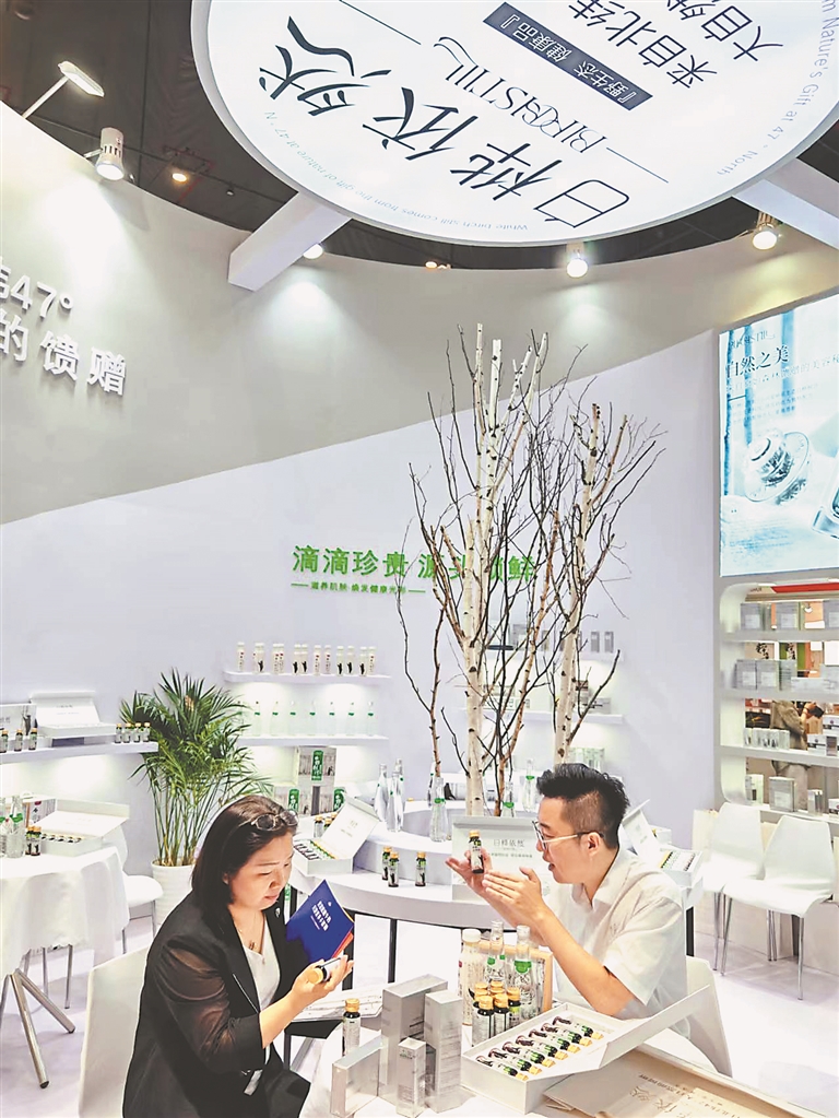 “產品所用的白樺汁原料源自鐵力市,這里處在北緯47°小興安嶺的黑土地上。”黑龍江雨曉科技有限公司總經理馬光西介紹,公司充分利用龍江“九珍十八品”資源,由雨曉集團與清華大學深圳科研團隊合作,運用先進技術開發(fā)提煉出白樺汁精華,為消費者不斷提供囗感獨特的綠色飲品、化妝品?,F在企業(yè)庫存清空,鐵力工廠正加班加點生產。本次展會的火爆出圈,讓企業(yè)對白樺汁系列產品走向世界市場更加充滿信心。