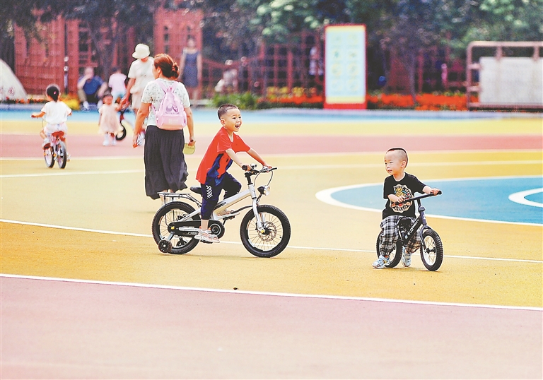 日前,哈爾濱市香坊區(qū)勞動公園內,許多家長和孩子一起游玩、健身、野餐、散步。家住附近小區(qū)的一位居民說,廣場彩化后整個公園變得更有魅力,孩子每天都要過來玩一玩。