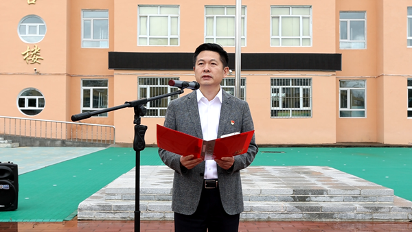 在國(guó)旗下,漠河市邊境檢查站代表陳澤和“全區(qū)十佳駐村干部”王成龍用自己生動(dòng)的故事為在場(chǎng)的每位少先隊(duì)員們上了一堂生動(dòng)的國(guó)防教育課,漠河市的少先隊(duì)員代表王涵在國(guó)旗下表達(dá)了對(duì)祖國(guó)的熱愛(ài)和對(duì)戍邊工作者們的敬佩。團(tuán)省委副書(shū)記陳海萍在講話中鼓勵(lì)少先隊(duì)員要學(xué)習(xí)漠河戍邊工作者們的堅(jiān)韌不拔和無(wú)私奉獻(xiàn),要立足祖國(guó)最北方志存高遠(yuǎn)、勤奮學(xué)習(xí)、錘煉品德、強(qiáng)健體魄,敢于創(chuàng)新、富于創(chuàng)意、樂(lè)于創(chuàng)造,要沿著“入隊(duì)、入團(tuán)、入黨”的“人生三部曲”奮力前進(jìn),為推進(jìn)中國(guó)式現(xiàn)代化、實(shí)現(xiàn)強(qiáng)國(guó)復(fù)興偉業(yè)貢獻(xiàn)青春力量。