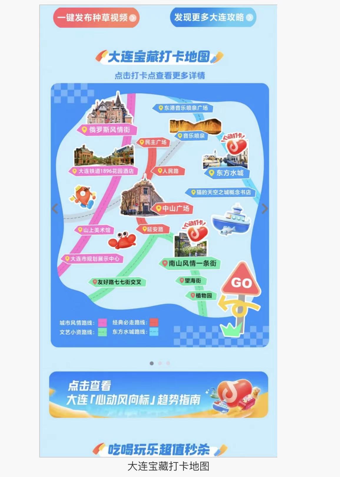 “心動(dòng)大連”活動(dòng)為期30天,線上活動(dòng)8月19日已經(jīng)開始,持續(xù)至9月17日?;顒?dòng)期間,抖音生活服務(wù)將聚焦大連夏季、秋季旅游產(chǎn)品,深入挖掘海濱城市差異化亮點(diǎn),通過線上推廣、線下打卡、文旅產(chǎn)品促銷等一系列舉措,提升大連城市品牌影響力,促進(jìn)當(dāng)?shù)匚穆孟M(fèi)。
