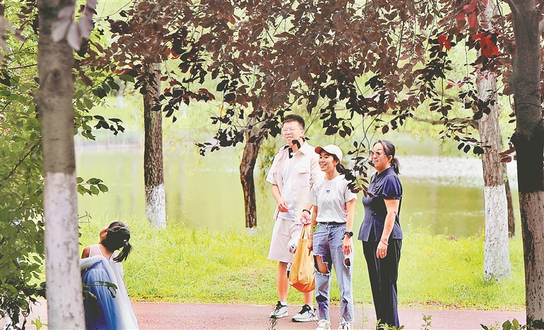周末,雙鴨山市市政廣場(chǎng)附近的安邦河畔,花草樹(shù)木郁郁蔥蔥,風(fēng)景如畫(huà)。