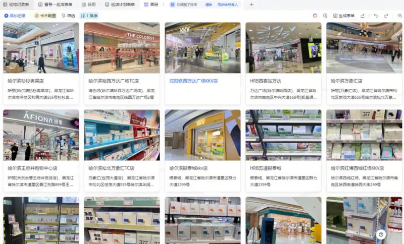 線下巡店工作能最大程度保障各終端貨品銷售質(zhì)量。過去,由于巡店工作涉及外出出差,巡店照片數(shù)據(jù)手機端無法操作整理匯總,影響問題處理時效且增加無用工作量?,F(xiàn)在敷爾佳運用飛書表單移動端操作,隨時上傳巡店結(jié)果及照片,表格儀表盤視角可以查看數(shù)據(jù)并進行一段時間內(nèi)的環(huán)比、同比分析,基于數(shù)據(jù)分析做任務(wù)下達,一次巡檢從發(fā)現(xiàn)問題到整改問題的全流程都能包攬,對于每位巡檢員來說,每天至少節(jié)省2.5小時數(shù)據(jù)統(tǒng)計時間,同時更清晰的了解每個督導的外出工作情況 。此外,查貨溯源沒有系統(tǒng)的數(shù)據(jù)存檔,多個渠道數(shù)據(jù)無法同步,無數(shù)個sheet篩選查詢數(shù)據(jù),容易出錯?,F(xiàn)在,運用多維表格協(xié)同操作,多個維度查看所需數(shù)據(jù),所有查貨情況能被沉淀和實時查看。