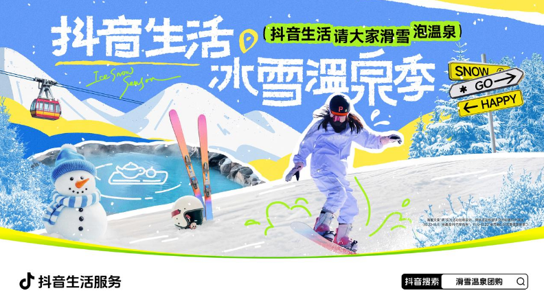 隨著全國各地降溫,“冰雪經濟”逐漸升溫。10月22日至12月22日,抖音生活服務發(fā)起“抖音生活冰雪溫泉季”活動,重點圍繞哈爾濱、長春、沈陽等城市,聯(lián)動政府、明星達人、商家線上推介當?shù)囟疚穆觅Y源,聚合物美價優(yōu)的冬季吃喝玩樂商品;線下打造雪人城市生活圈、抖音生活市集等,吸引用戶出游打卡,激發(fā)冰雪消費熱情,助力冰雪城市出圈。