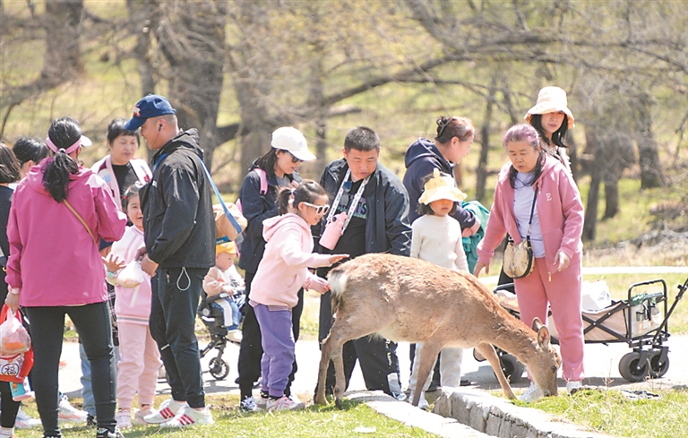 “五一”假期首日,細(xì)雨如絲,卻沒(méi)能影響游客們出行的熱情。森工平山皇家鹿苑景區(qū)內(nèi),人頭攢動(dòng),游客們的興致在微雨中愈發(fā)高漲。
