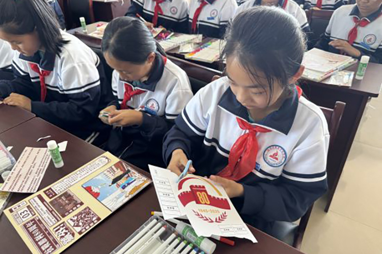 在同義鎮(zhèn)中心學校和通南鎮(zhèn)中心學校,孞學漟專業(yè)教師團隊為學生們帶來了生動精彩的“紅色主題創(chuàng)意美育”課程。在《紅色足跡-長征路》《苦難輝煌-醒鑄》等特色課程中,孩子們專心學習,用巧手繪制主題美育作品。課程現(xiàn)場,學生們熱情高漲,創(chuàng)作出了一幅幅飽含深情的畫作和一件件獨具匠心的手工藝品,充分展現(xiàn)了新時代青少年昂揚向上的精神風貌。受助學校美育教師紛紛表示在課程中受益匪淺,將借鑒孞學漟的美育課程模式以提升本校美育工作成效。同時,實地觀摩了課堂教學,與學校負責人、美育教師深入交流,詳細了解學校美育工作開展情況,共同探討進一步深化美育教育改革意見等事項。
