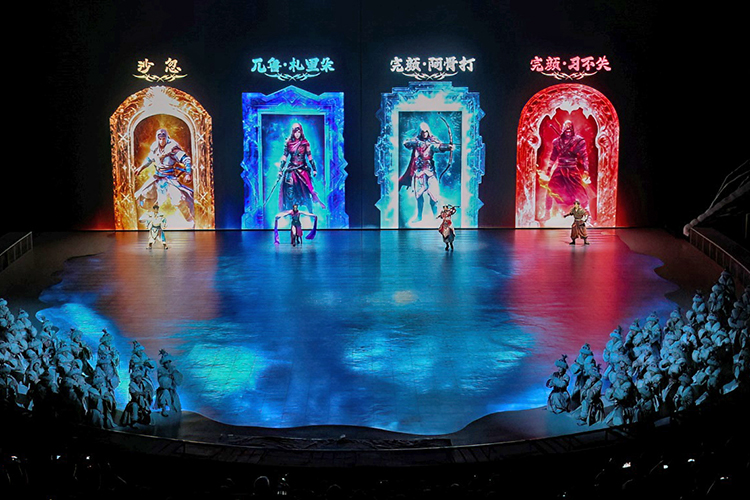 2.0版本《王的戰(zhàn)車》以北方部落的古老傳說為藍(lán)本,將傳統(tǒng)技藝與現(xiàn)代科技巧妙融合,既保留了傳統(tǒng)雜技的力量與驚險(xiǎn),又通過全息投影技術(shù)、天幕+地屏等科技手段賦予其全新的藝術(shù)表達(dá)。