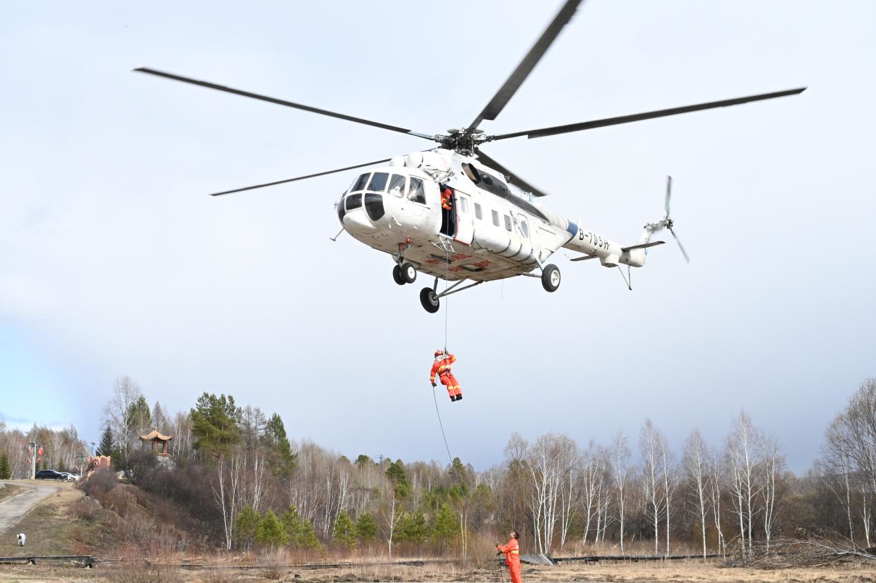 韓家園林業(yè)局森林消防大隊開展索滑降實機訓練(于健 攝)