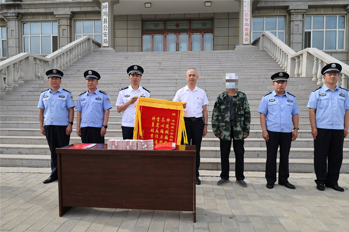 儀式上,呼瑪縣公安局向受害群眾現(xiàn)場返還了被騙的29萬元,同時受害群眾將一面印有“神速破騙挽損失 盡心竭力護民財 雷霆反詐追贓款 神勇破案暖民心”的錦旗送至局主要領導手中,并對公安機關高效破案、全力追贓表示衷心感謝。