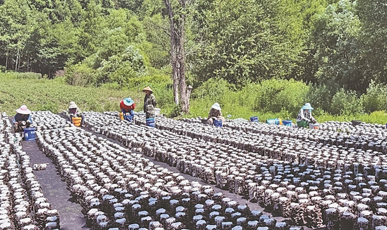 退休職工韓壽云就是這一模式的直接受益者:“多虧了林場幫忙平整菌地,還給提供菌種和技術(shù)指導,我家今年種了3萬袋,算下來能增收5萬多塊錢,遇到啥困難,林場都幫著解決?!?/p>