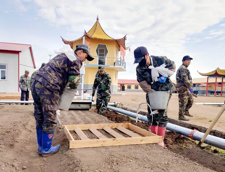 新林林業(yè)局苗圃職工正在拉線培土做苗床(劉磊攝)