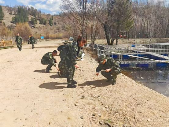 大烏蘇林場職工正在清理魚塘周圍環(huán)境(朱旭 攝)