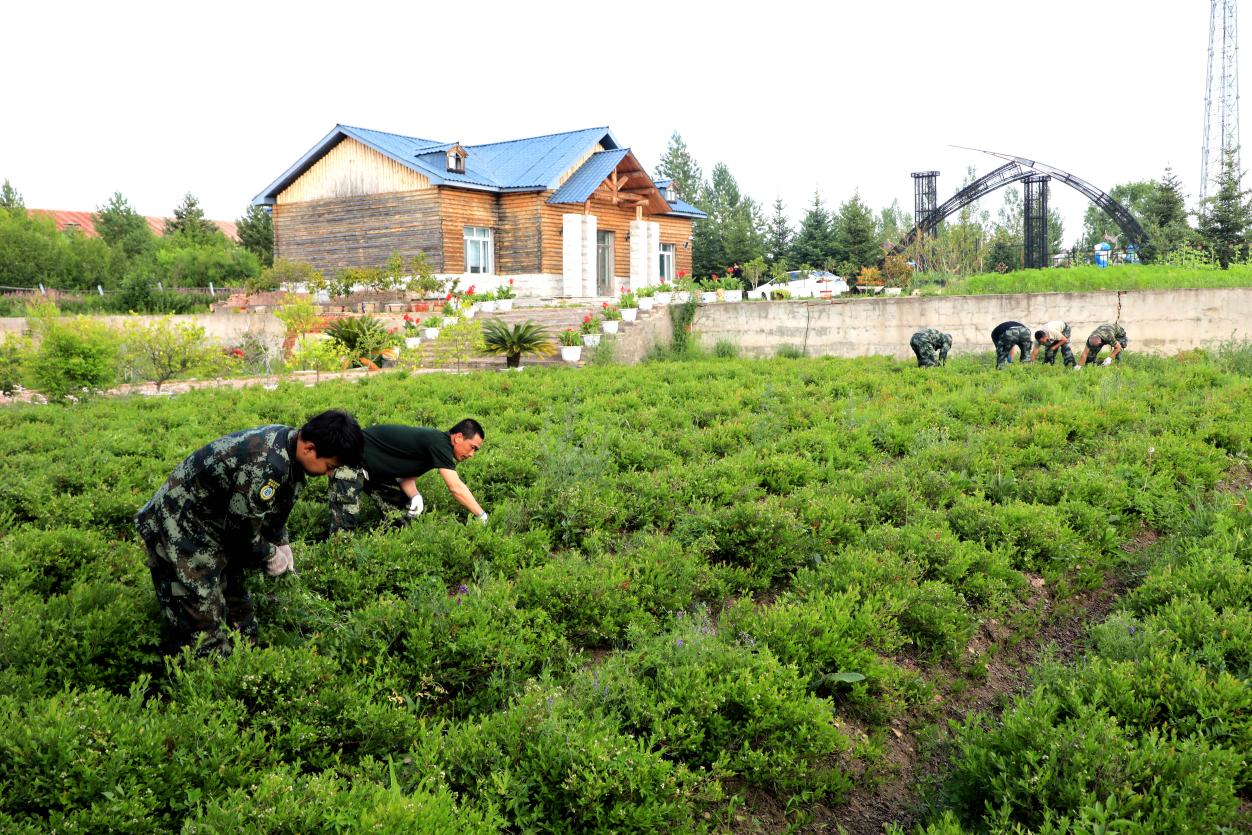阿木爾林業(yè)局“森林衛(wèi)士”在藍莓園參與田間管理實踐活動(王力 攝)