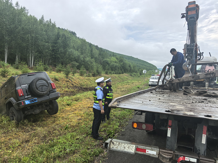 大興安嶺地區(qū)行署(森林)公安局圖強(qiáng)分局交警大隊(duì)接警后迅速趕赴現(xiàn)場展開救援。事發(fā)時路面濕滑,能見度較低,車輛墜落位置較深,圖強(qiáng)分局交警大隊(duì)民警迅速展開救援工作,并立即聯(lián)系拖車將事故車輛拖離現(xiàn)場。