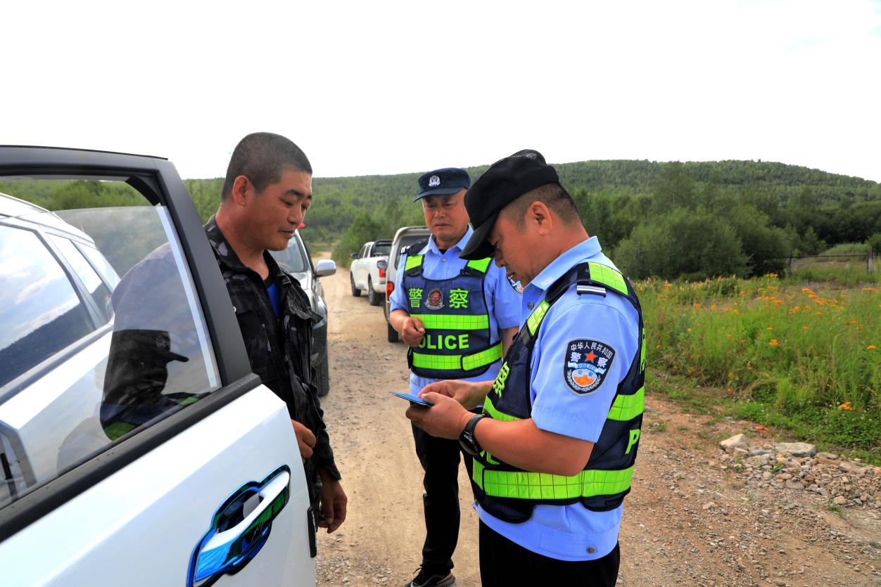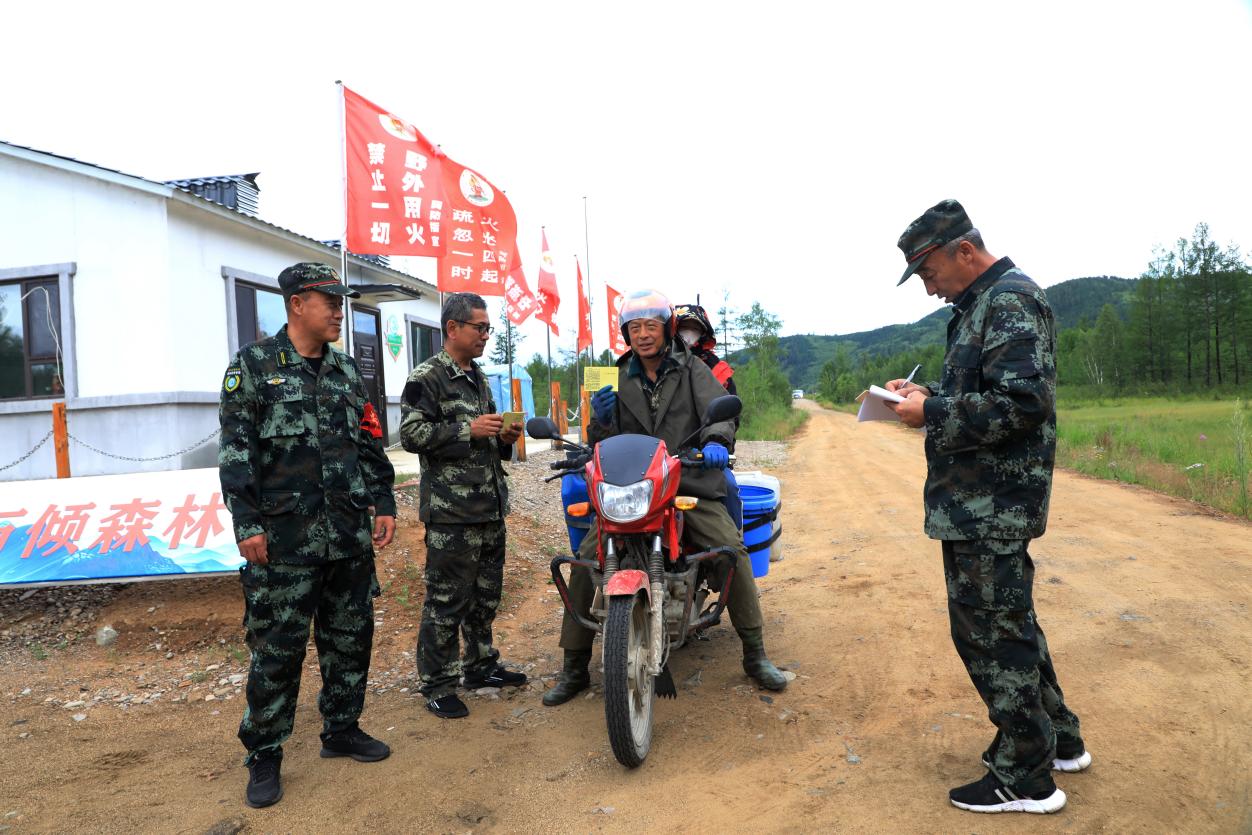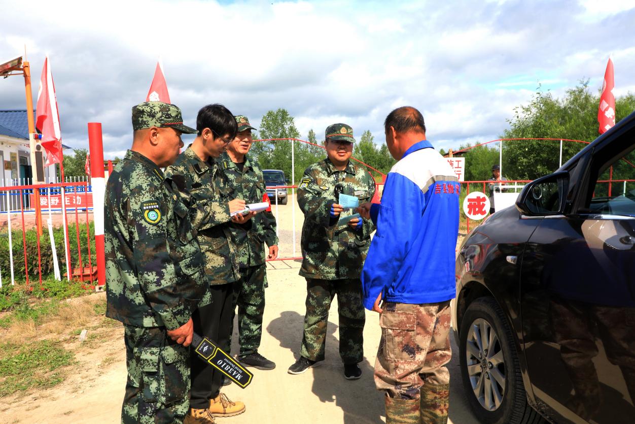 阿木爾林業(yè)局森林資源管理科與長(zhǎng)山林場(chǎng)組成聯(lián)合檢查組,在認(rèn)真檢查入山人員身份信息(王力 攝)