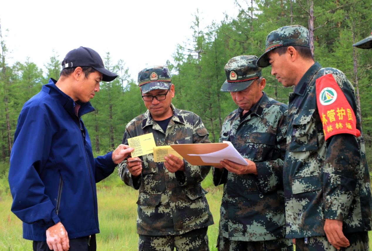 阿木爾林業(yè)局森林資源管理科與綠林林場(chǎng)組成聯(lián)合檢查組,履行林長(zhǎng)制職能,認(rèn)真核實(shí)入山人員身份信息(王力 攝)