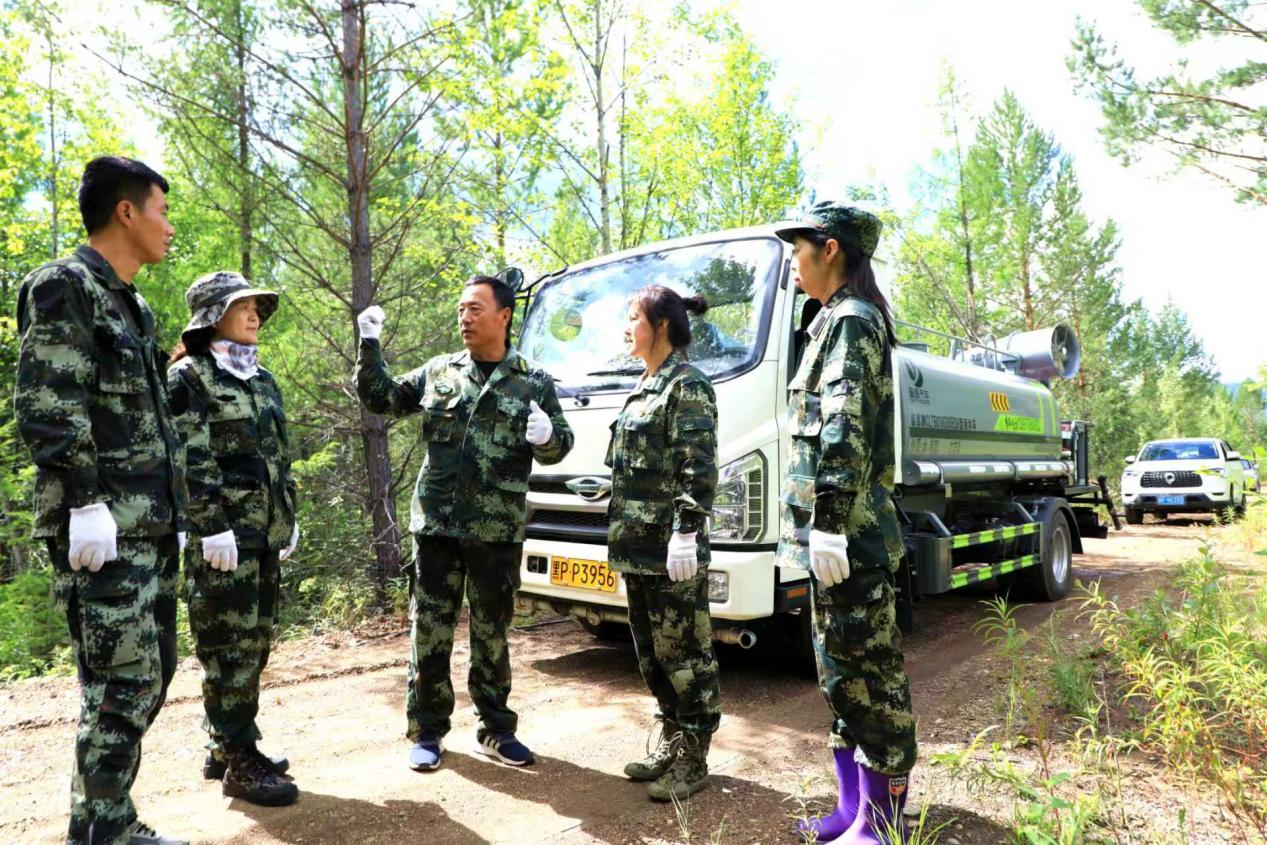 阿木爾林業(yè)局防治站工作人員在1—0—1—2線溝系,模擬突發(fā)突發(fā)梢斑螟等松樹鉆蛀類害蟲災(zāi)害,開展防治工作(王力 攝)