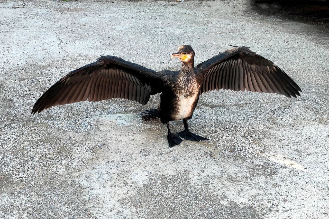 這只引發(fā)關(guān)注的“大鳥”,通體漆黑,身形壯碩,獨(dú)特的彎鉤狀長(zhǎng)嘴格外醒目,但卻絲毫不見尋常野鳥的靈動(dòng)。憑借多年的巡護(hù)經(jīng)驗(yàn),工作人員判斷這極可能是珍稀鳥類,當(dāng)即小心翼翼地將其帶回林場(chǎng)安置,并第一時(shí)間聯(lián)系野生動(dòng)物保護(hù)專業(yè)人士。經(jīng)專業(yè)人士鑒定,這只“大鳥”是國(guó)家“三有”保護(hù)動(dòng)物鸕鶿,它體表無明顯傷痕,但羽毛蓬松雜亂,反應(yīng)遲鈍,明顯處于體力透支狀態(tài),結(jié)合近期當(dāng)?shù)貧鉁伢E降、降雨頻繁的天氣特點(diǎn),專業(yè)人士推測(cè),這只鸕鶿很可能因覓食困難、能量消耗過大而陷入虛弱。