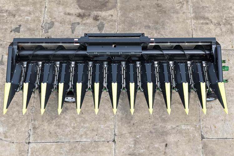 現(xiàn)場會上,最讓人駐足的是現(xiàn)場展示的意大利卓收割臺, 此次引入的卓收割臺,其自動摘穗板每行單元可實現(xiàn)自動開合且?guī)в袦p震功能,能根據(jù)玉米粗細(xì)靈活調(diào)節(jié)間隙,有效解決了其他品牌割臺無法對每行每株精準(zhǔn)適配的問題;同時,收割臺的拉莖輥長度較其他品牌割臺增加 8 公分,讓割臺更貼合地面,在收獲倒伏玉米時作業(yè)角度更優(yōu),大幅減少 “跳棒” 現(xiàn)象。此外,卓收割臺的拉莖輥及刀片采用螺栓固定設(shè)計,可隨時調(diào)整位置或更換部件,避免了其他割臺因拉莖輥及刀片為一體式設(shè)計、損壞后需整體更換的弊端。