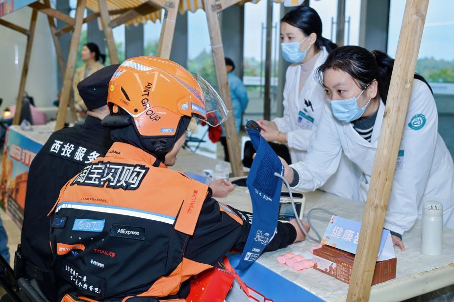秋冬季節(jié)多發(fā)流感,全國(guó)各地、各級(jí)工會(huì)等主管部門聯(lián)合淘寶閃購(gòu),持續(xù)開展暖冬物資發(fā)放、免費(fèi)體檢等活動(dòng)。在貴陽(yáng)、銀川、溫州、武漢等城市,騎士日活動(dòng)還設(shè)置了專門的體檢車,為騎士提供便捷的健康檢查,在南京、成都等地開展義診。